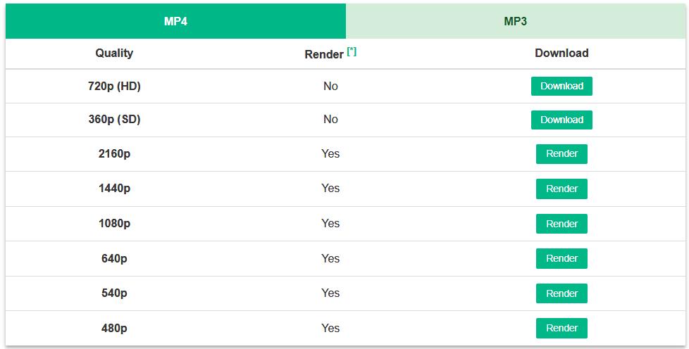 Step 3: Choose the quality you prefer and click the Download or Render button. The available options vary from video to video. Render means this tool need first to download and merge the video and audio tracks before downloading to your computer, which can take quite a long time depending on the file size.