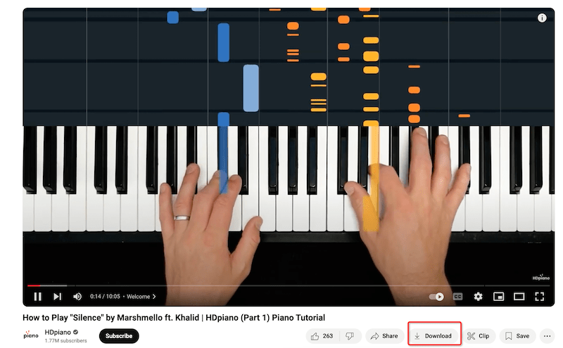 Some videos on HDPiano’s official site or their YouTube channel come with a download option. In this case, you can download videos straight from the site or their YouTube page.