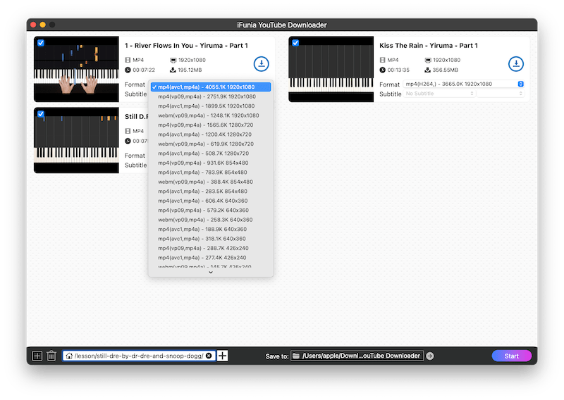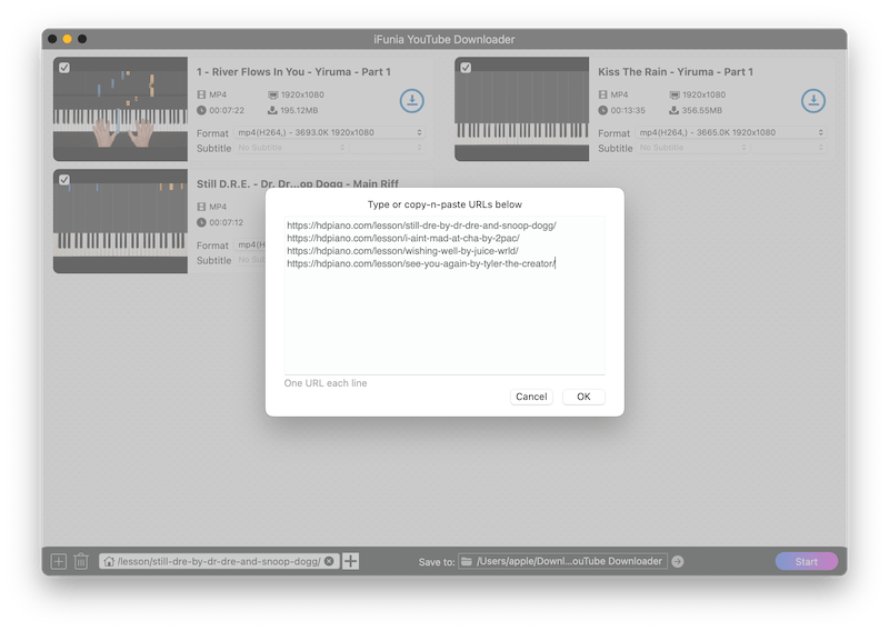 After brief testing, I was attracted by the fluent user experience of iFunia YouTube Download. It is the only tool that supports downloading videos and playlists from the HDPiano official site and the YouTube channel. Also, it works fine with my retina display.