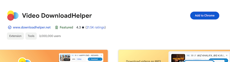 Video DownloadHelper is a very popular video downloader extension available on both Chrome and Firefox. In our test, it also supports downloading HDPiano videos.