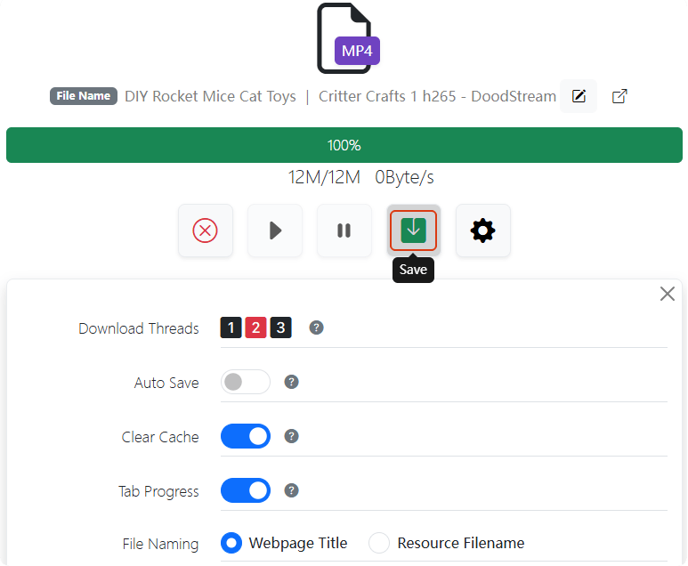 - Then, by clicking the gear icon, you can define some settings. Finally, hit on the Save button to start downloading the DoodStream video one by one.