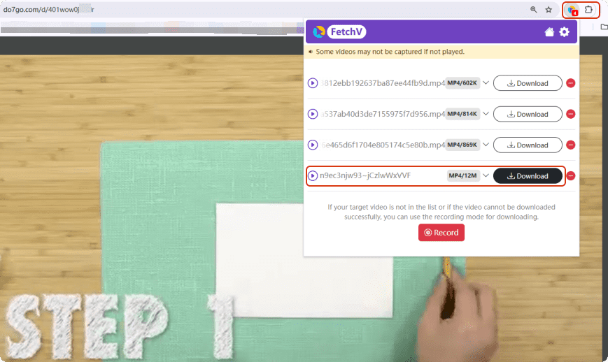 - Refresh and play the DoodStream video. Find the extension icon in the upper menu, and select FetchV you just added.