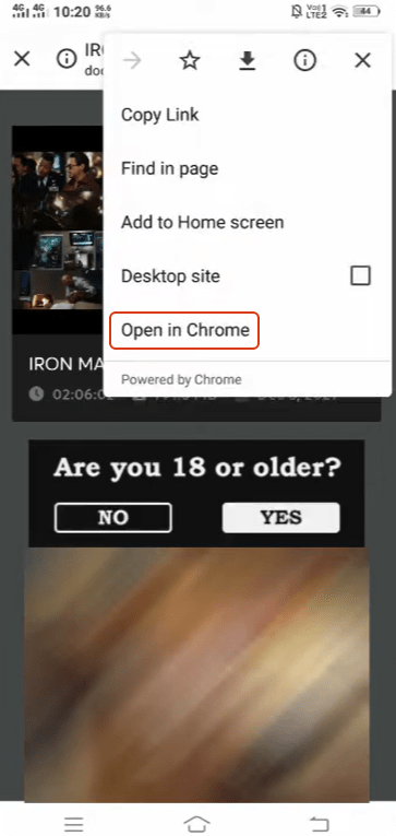 - Hit on the three-dot icon above to open it in the browser. Attention⚠️ It will redirect to ad pages a few times, just skip them and try again until it really processes.