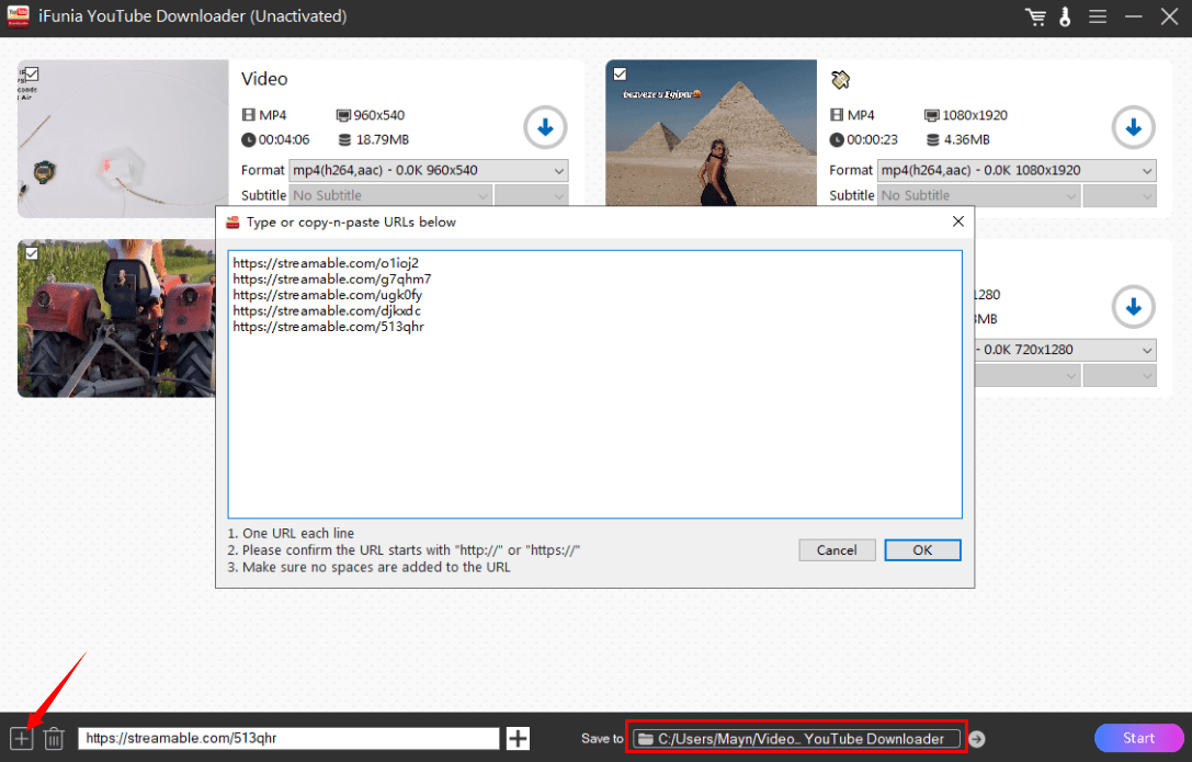4. For batch download, click the ➕ icon at the left corner and simply paste all the video URLs.
