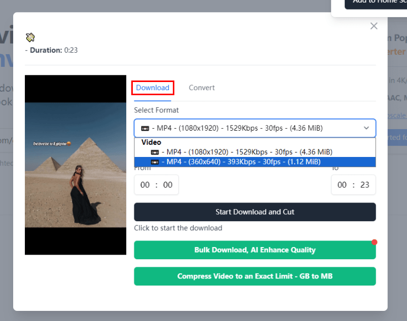 5. Select a resolution and click Download. It will be downloaded in a few seconds.
