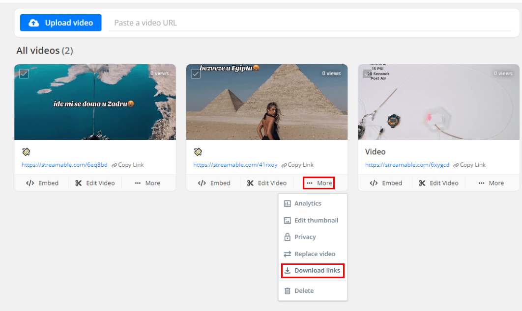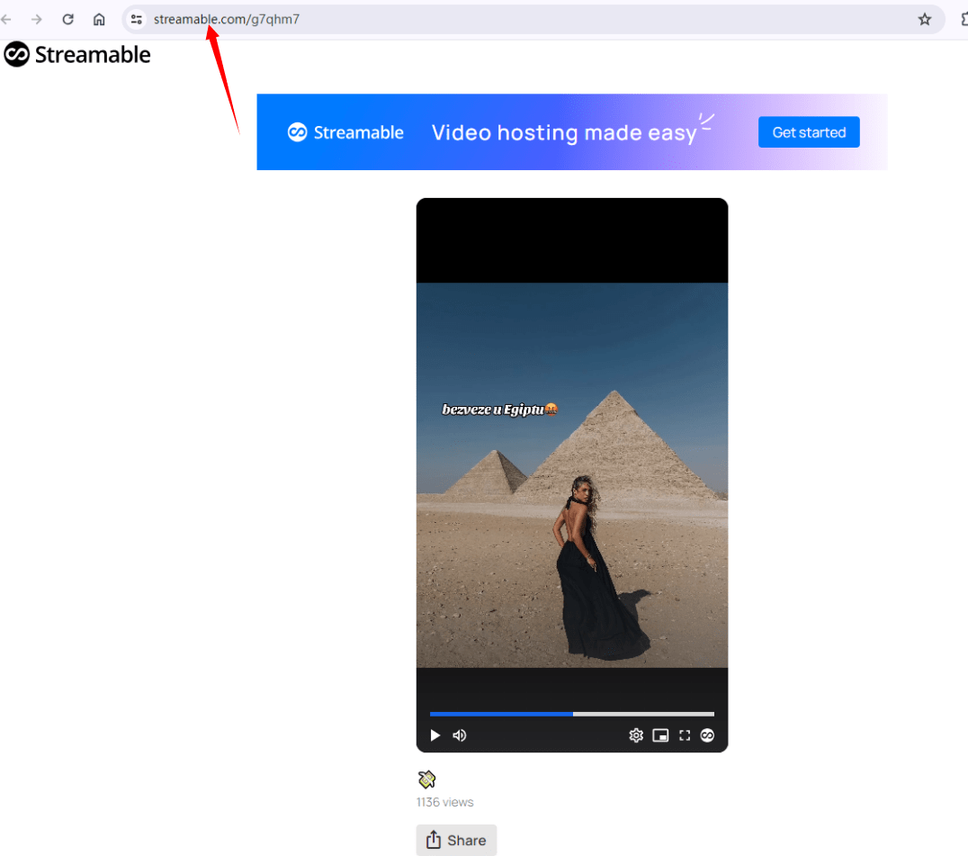 2. Find the URL link of the Streamable video and copy it.