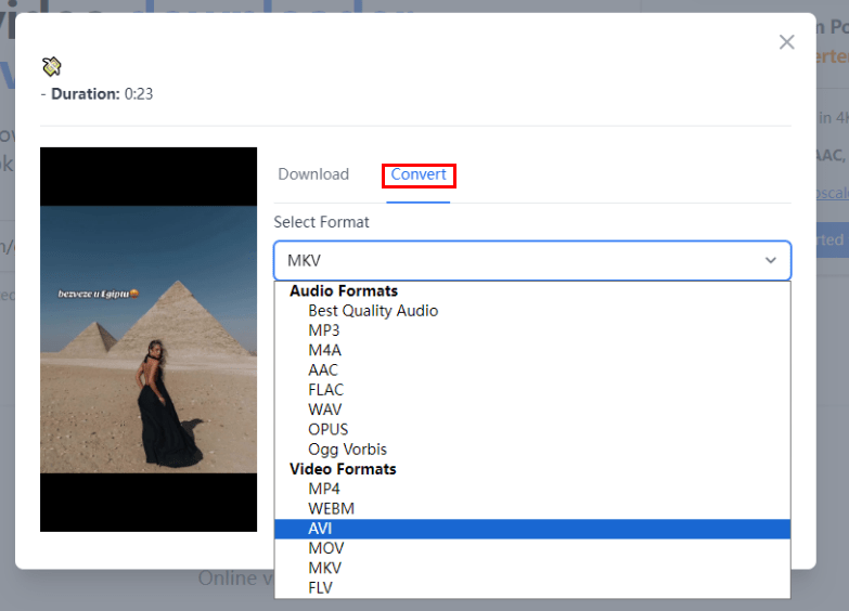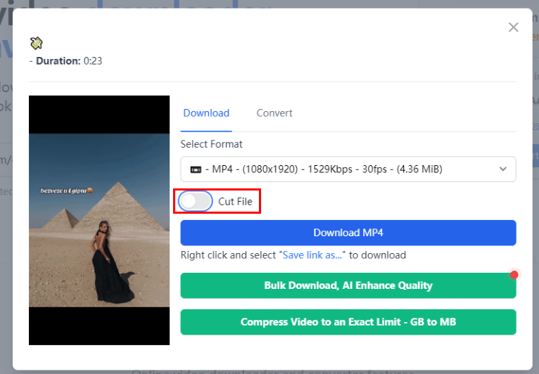 This is a free online video downloader and converter for Streamable, Vimeo, Twitter, Facebook, and many other sites. It allows you to choose an output format from a list of options like MP3, MP4, MKV, WebM... Besides, you can cut the file according to your needs.