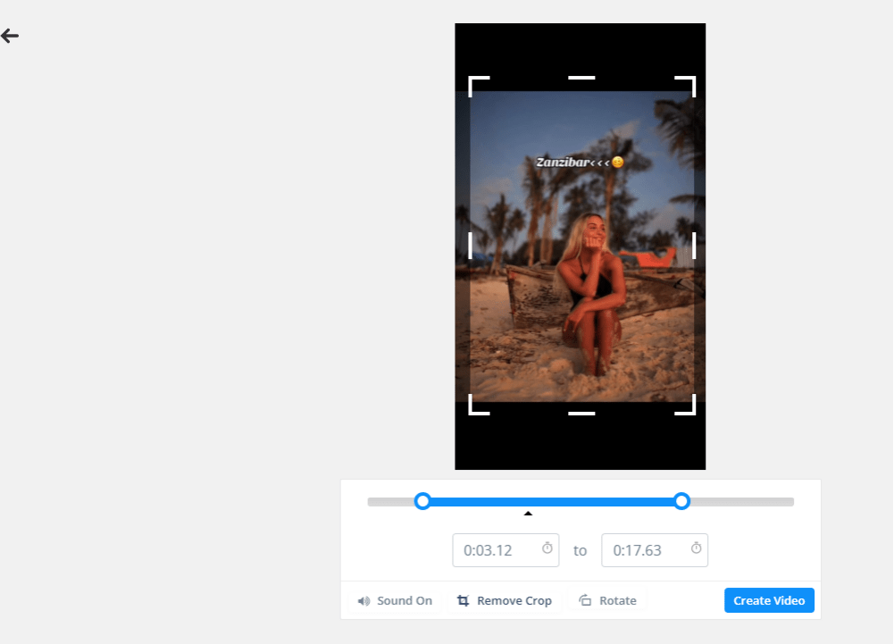 3. You can edit the video, reset the length, crop the size, cut off the sound, or rotate it. Then click Create Video.