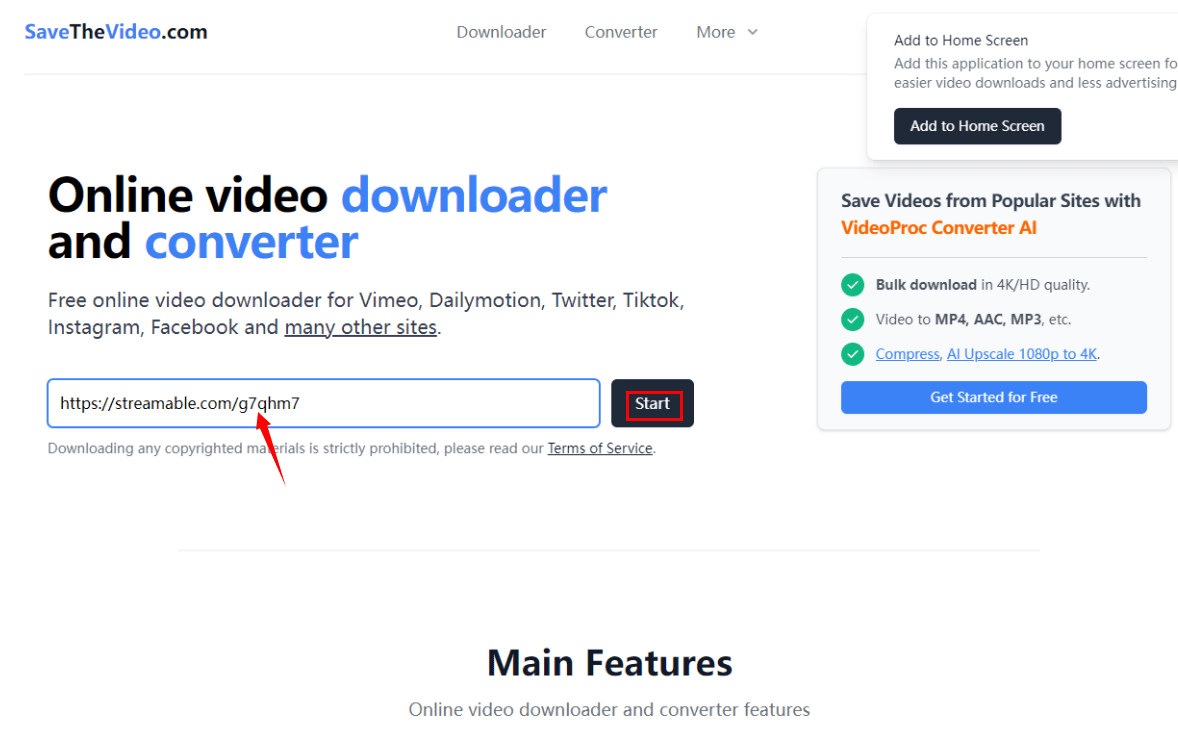 Note: there’s another quicker way to use this online downloader, add “dl” to the end of streamable in the URL, for example, for video https://streamable.com/g7qhm7, I change it to https://streamabledl.com/g7qhm7, then it turns to the download page for downloading.