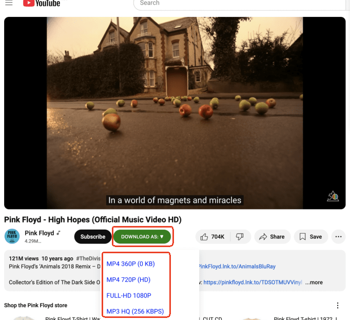 - You’ll find a long list of format and definition options, besides, subtitle options. You can download YouTube video to flash drive in 1080P or 4K, in MP4 or extract just the music, in English or German.