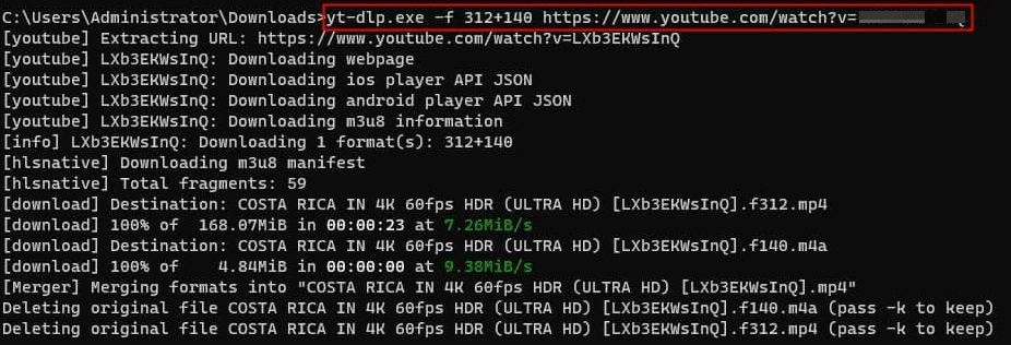 yt-dlp -f “bestvideo[ext=mp4]+bestaudio[ext=m4a]” YouTube ur