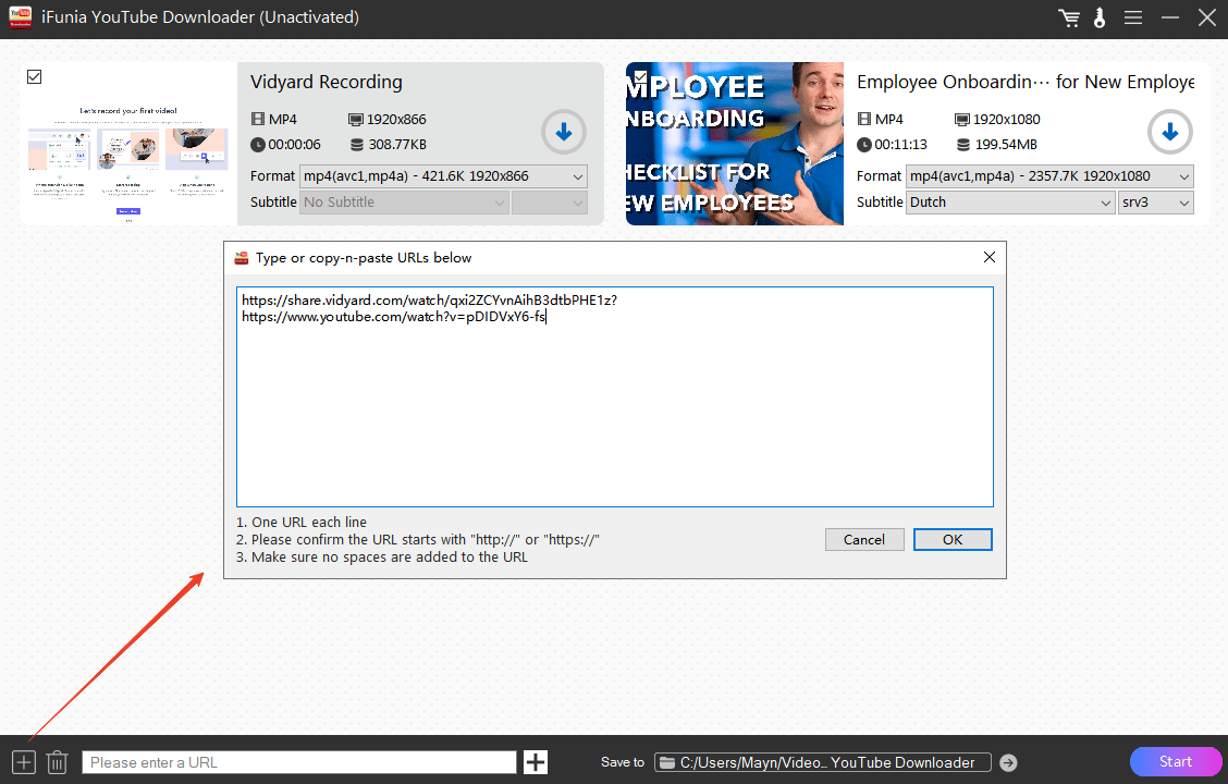 - Batch download video from Vidyard is also an option by hitting on the ➕ at left and pasting all the video addresses at one time.