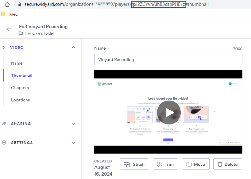 - Find the UUID (it’s like the ID of the video) in the video link. It’s a 22-character mostly after /players/.