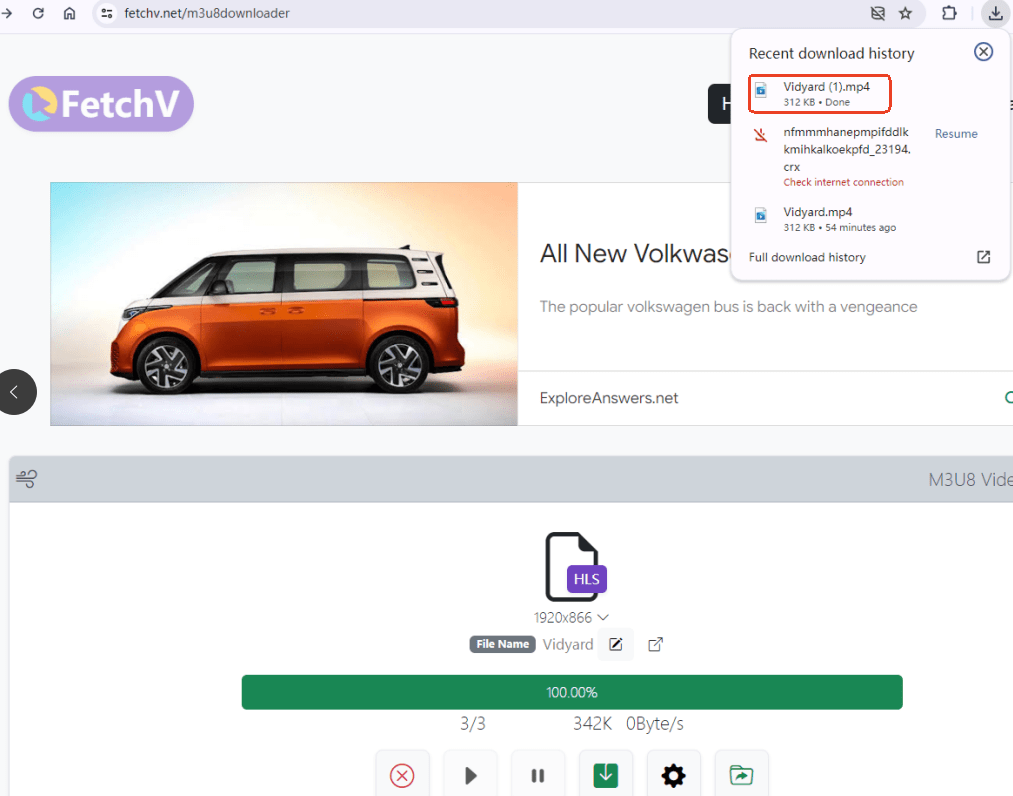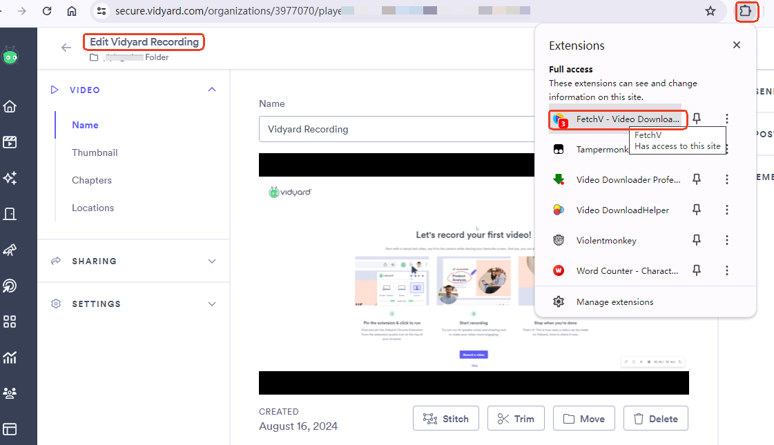 FetchV Video Downloader is a well-known free extension for m3u8 & hls video download. It saves online videos like mp4, m3u8, live streams, webm, etc. for free. By adding the plugin into your Google, you can easily download video from Vidyard online without software.