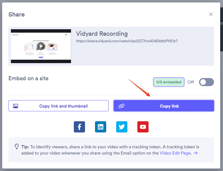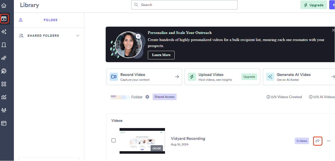 - Go to Vidyard. In the Library, find the video you want to download, click the share button.