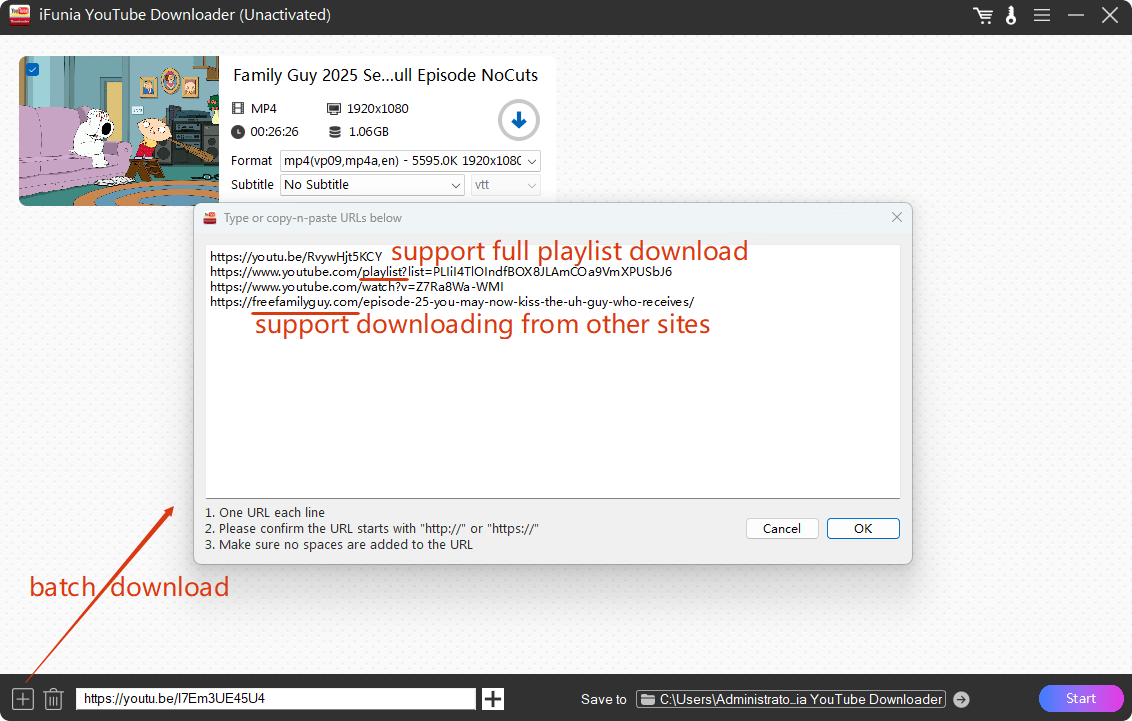 After testing a few methods, I found a best way for Family Guy complete series download - using iFunia YouTube Downloader. It’s a downloader dedicated for YouTube videos download, but it can also download films, series, and videos from many other websites like Twitter, Facebook, Vimeo, Reddit, and etc.