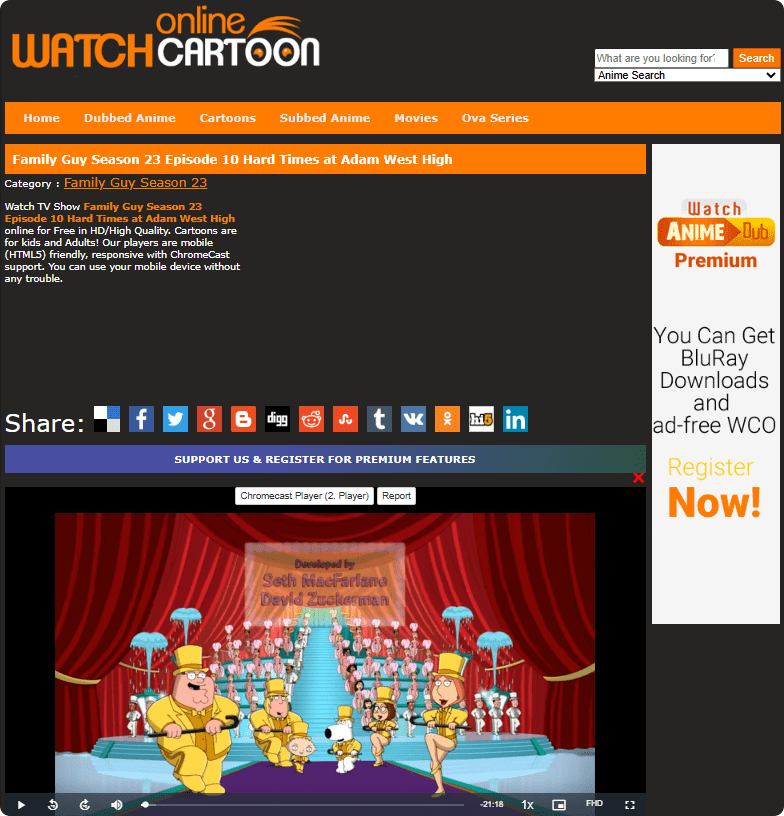 WatchCartoonOnline is an excellent website to watch various cartoons and anime online. If you are an anime fan, this site is a fortune for you as there are a huge library of cartoons and anime on it, including dubbed and subbed ones. It has the latest releases, such as the Family Guy season 23.