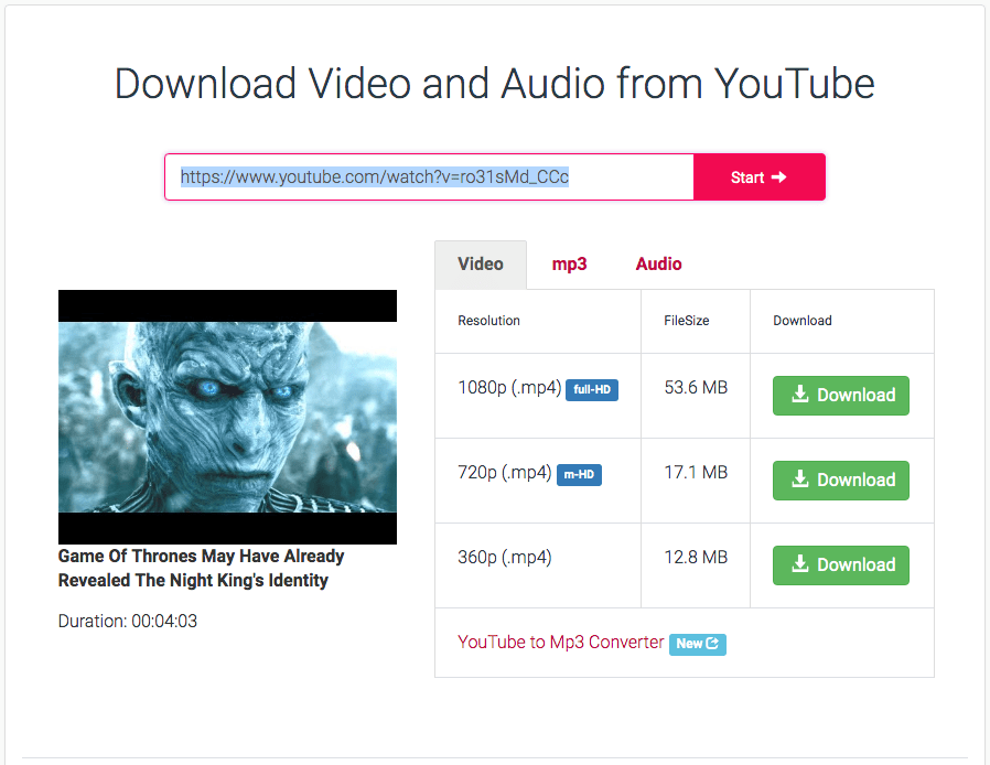 Also, there is online solution to free download Game of Thrones by using online video downloader. After testing dozens of online video downloaders, we finally pick y2mate, which can help users to download videos successfully.