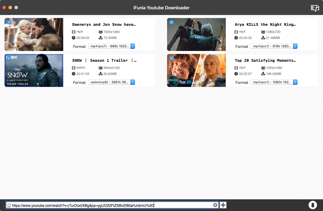 While, iFunia YouTube Downloader comes as the best choice to free download Game of Thrones full seasons. It is a program allowing users to download videos from YouTube, HBO, Fox, BBC, Reddit, Vimeo, Dailymotion and more than 1000 websites in batch. That is to say, where you can find the source to free watch Game of Thrones online, where iFunia YouTube Downloader can download the episodes. For Windows users, you can refer to the list of Windows video downloader in the end of this part.