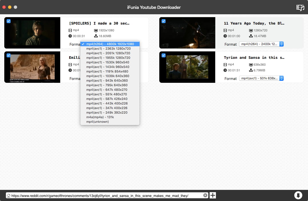 And it is really convenient that iFunia YouTube Downloader allows users to free download Game of Thrones even from Reddit.