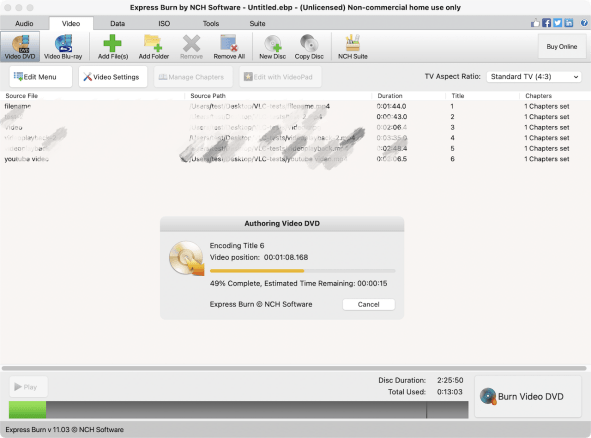 In terms of DVD authoring, you can create a basic menu from a few templates, but can’t freely design the menu layout, buttons, etc. Also, although it offers a video editing feature, you need to download and purchase another tool called VideoPad to do the job. Overall, Express Burn free version is a reliable free DVD burning software on Mac with limited features, and you can upgrade to a pro version to burn all types of DVDs without restrictions.