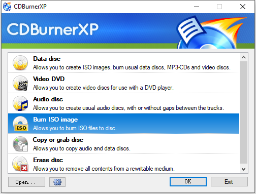 Don’t let its name fool you, CDBurnerXP is a free program that can burn both CDs and DVDs, including Blu-ray and HD DVDs. It also includes the feature to burn, create and convert ISO images. You can use it to burn data DVD, audio DVD or video DVD (from VIDEO-TS folder). It’s a lightweight and reliable free DVD burning software for Windows 10, if you don’t need to create video DVDs.