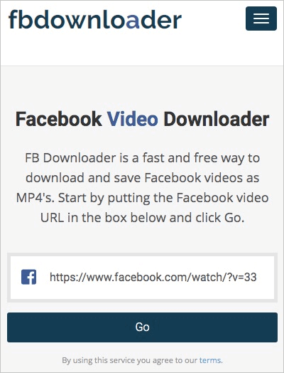 Step 3. On the built-in browser, visit fbdownloader.net.