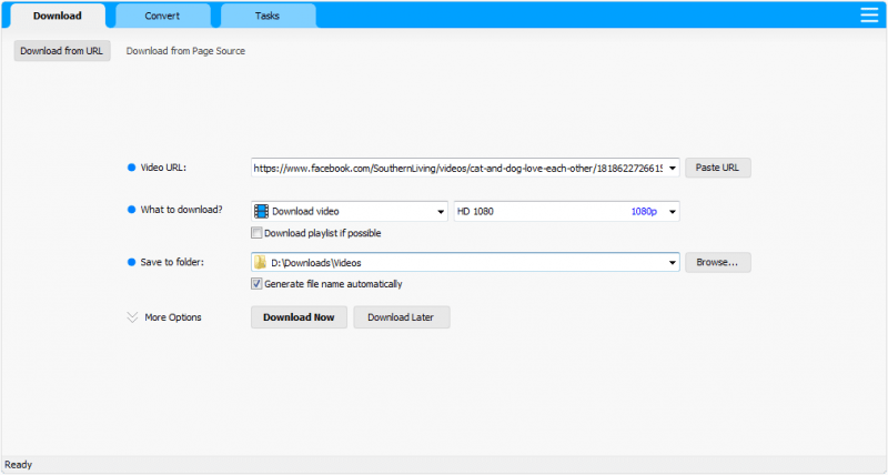 Step 2. Now you are under the Download tab. Paste the Facebook live video’s link in the Video URL field.