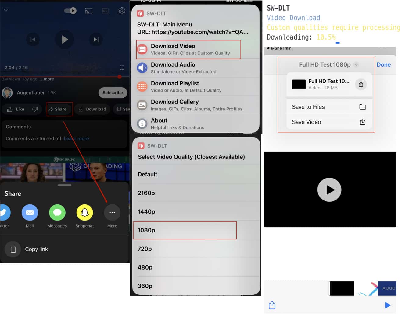 The Shortcut really works on my iPhone 13! I downloaded a YouTube 1080p video using a-shell mini and the Shortcuts. It's just a little slow. I think this supports more than YouTube.