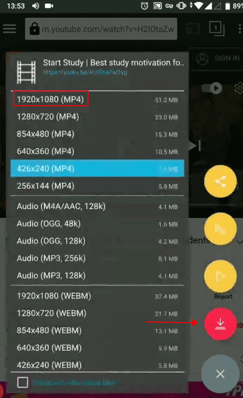 YouTube video download -- 1080P on Android: