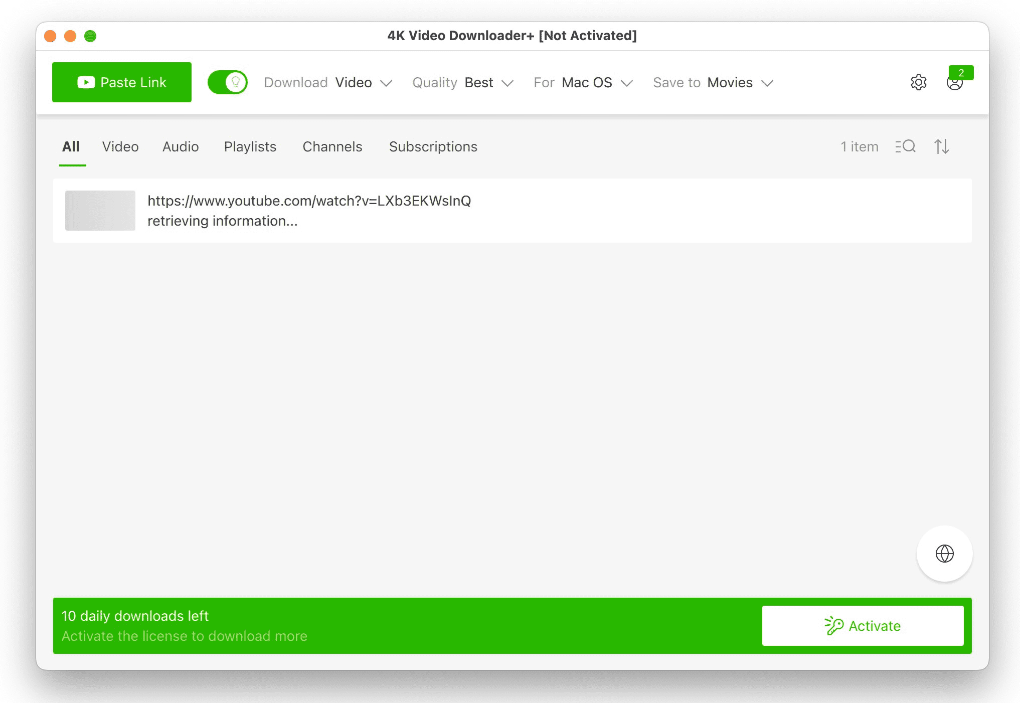It’s a popular video downloader and you have up to 10 free downloads per day. However, during my testing, it’s slow and it takes so long to just retrieve information.