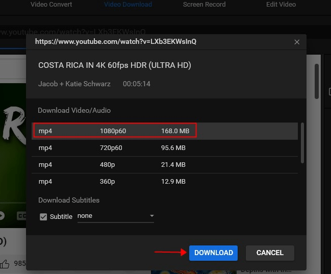 It only takes a few simple steps for YouTube video download 1080 online for free: