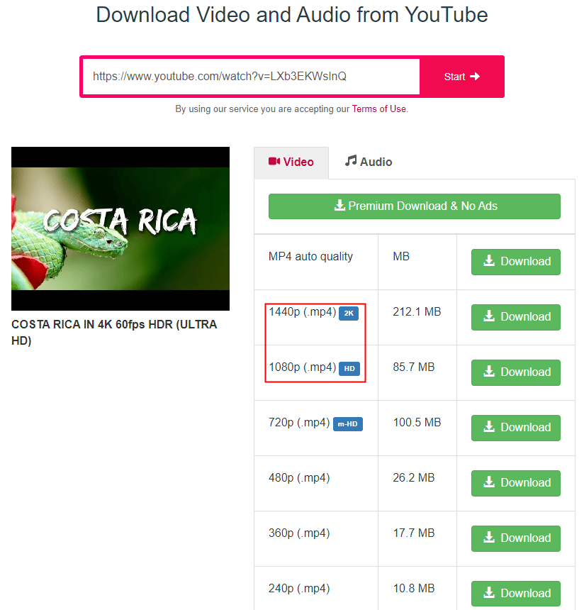 This free online service for 1080P YouTube download couldn't be easier to use. It can download from YouTube 1080P and other video streaming sites such as Facebook, Instagram, and Dailymotion. Apart from HD 1080P, it also allows users to download videos in 2K.