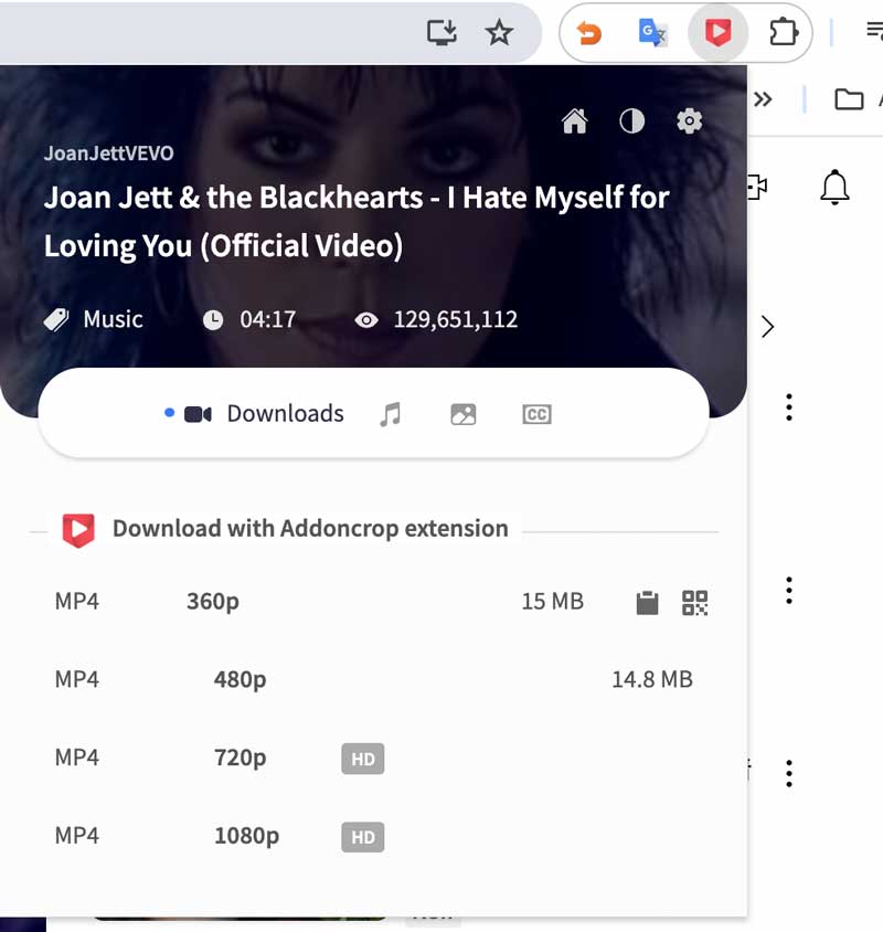 Chrome Web Store doesn't allow extensions to download videos from YouTube. Therefore, you can’t find an extension that supports download YouTube videos here. The extension we introduced here named Addoncrop Youtube Video Downloader.