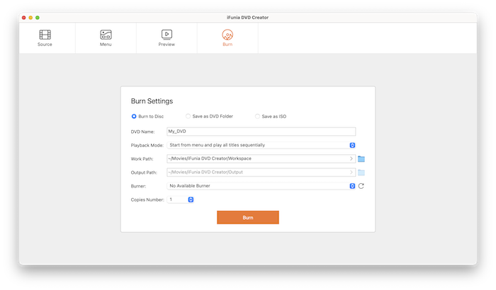 7. Copies Number: iFunia DVD Creator allows you to burn up to 30 copies, you can choose the number of copies you want to burn.