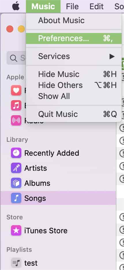 Step 1. Open Music, choose “Music” from the top menu bar > select “Preferences”.