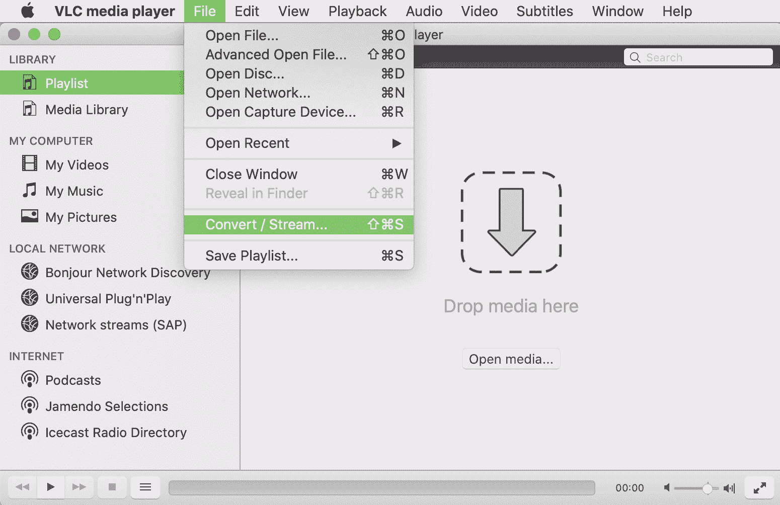Step 1. Launch VLC, click File > Convert/Stream from the menu bar.