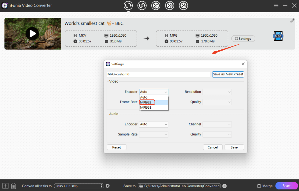 Click the gear icon beside to specify the video encoder as MPEG-2.