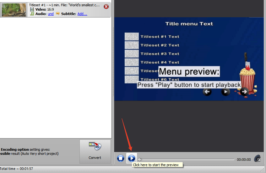 Move to the Preview tab to simulate playback via a built-in DVD player controlled by a remoter on the right hand. Go back to the previous steps to adjust the unsatisfactory parts.