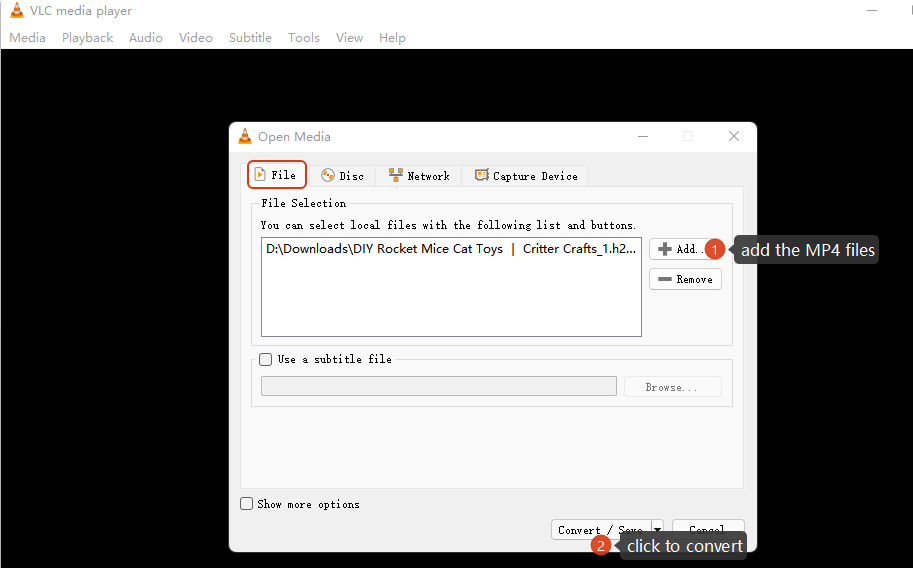 You can simply drag the file into the program, so it will directly show the video name instead of typing it;