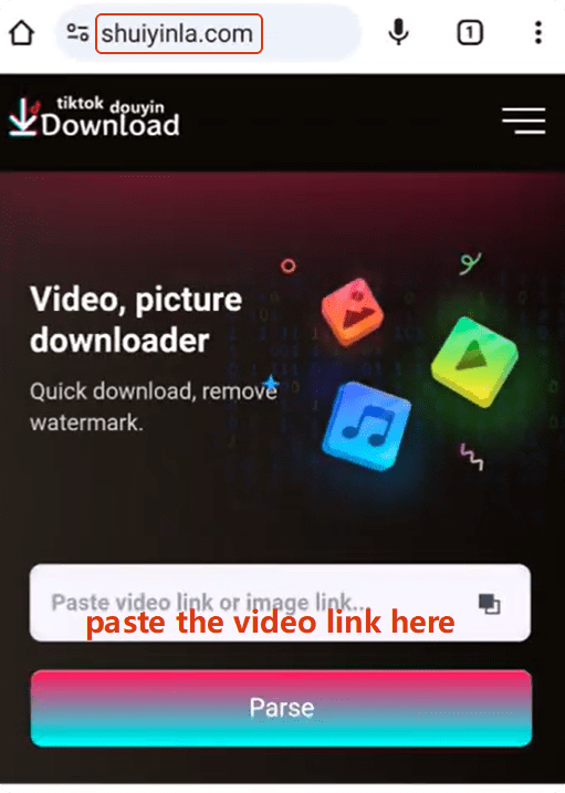 - Search the Xiaohongshu video online download site shuiyinla.com in browser like Google or Safari. Paste the video link you copied into the search bar.