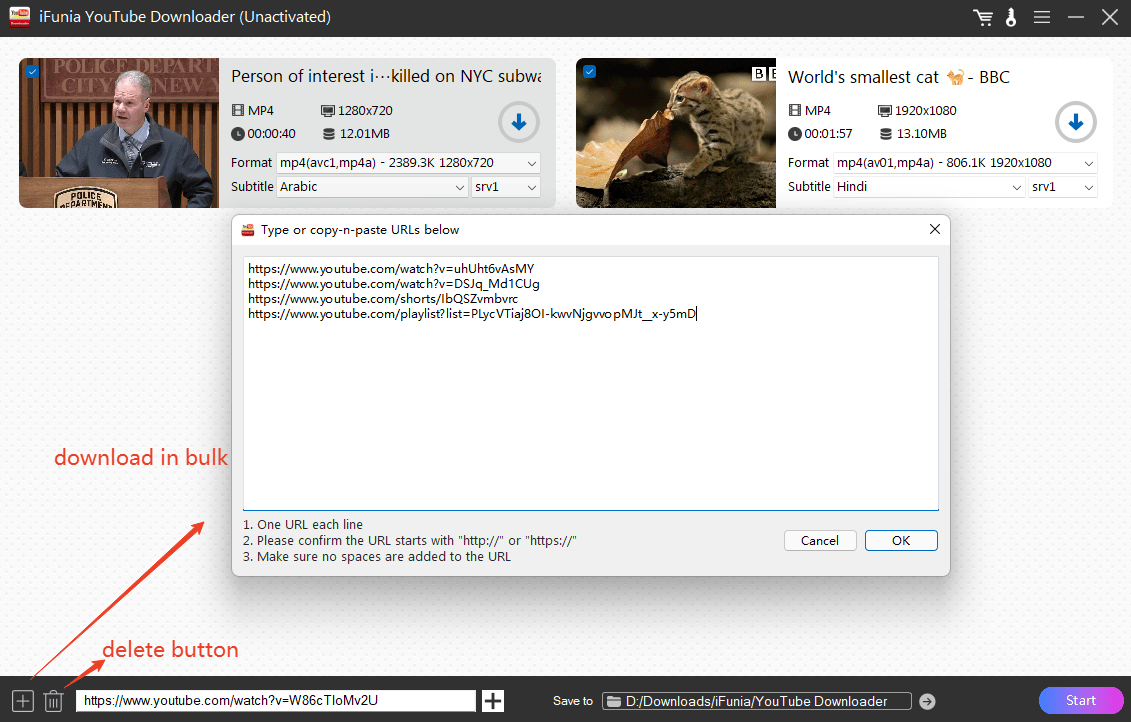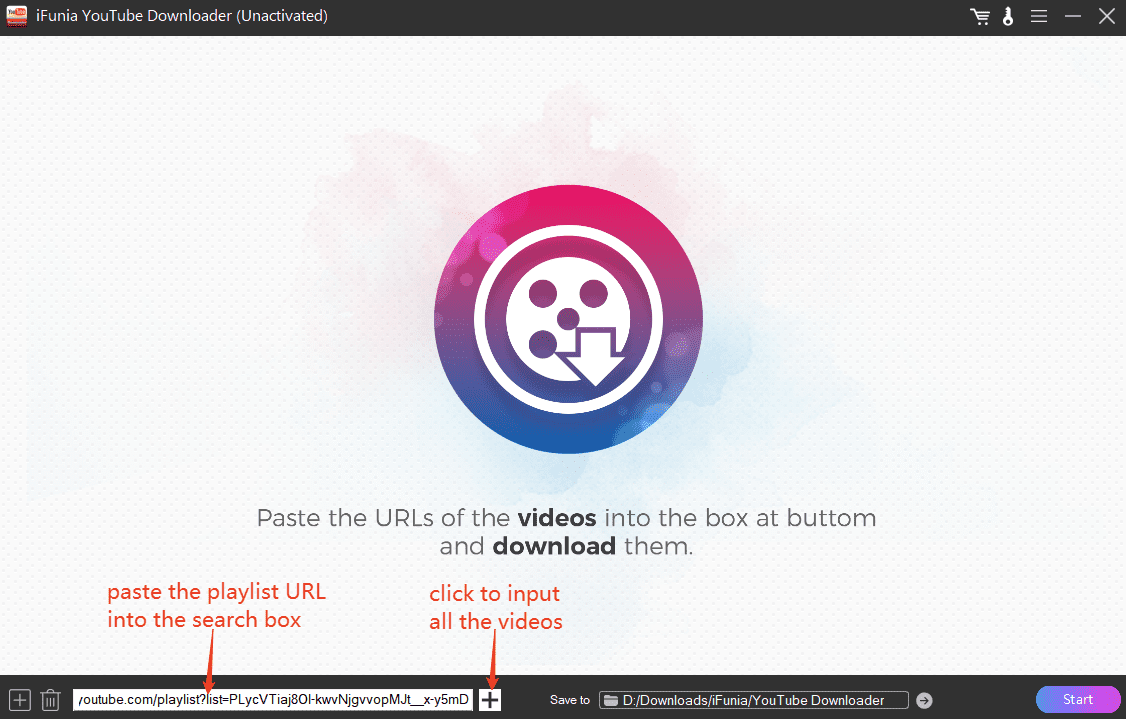 Step 3: Paste the YouTube playlist link into iFunia, and click the "+" button at the right to start loading all the tracks. It will take a few minutes to load the entire playlist. In my case, it took 2 minutes to load all the 17 videos.