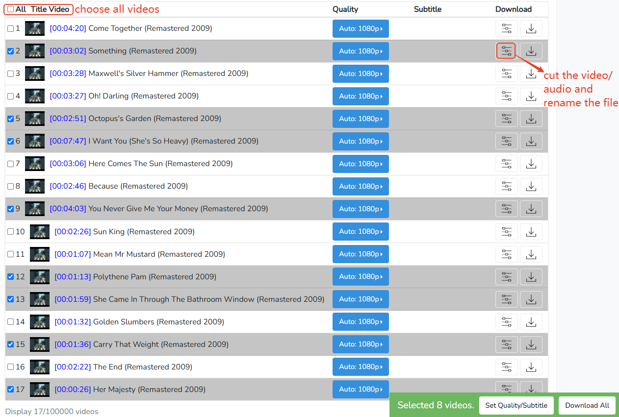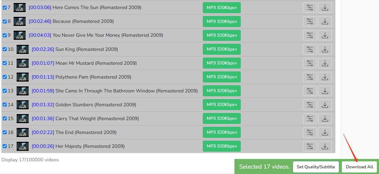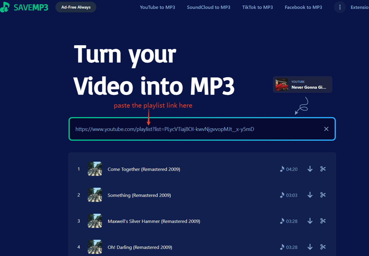 SaveMP3 is a web-based YouTube playlist downloader that allows you to download playlists from YouTube to MP3 online. It can display all the tracks of a playlist and download them one by one conveniently.