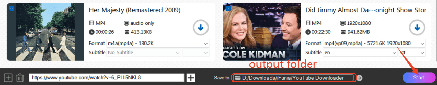 Step 5: Finally, choose an output folder and click the Start button at the lower right to start the YouTube playlist download.