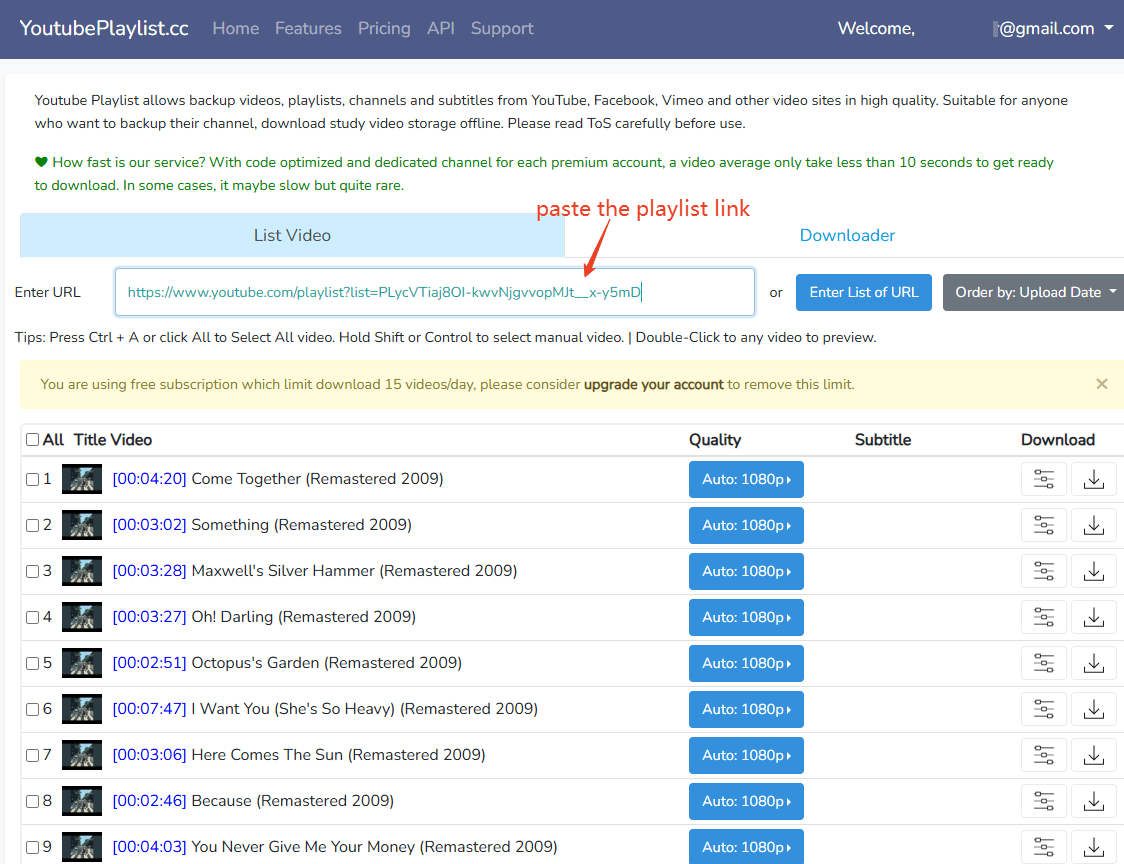YouTubePlaylist.cc is another popular online service for YouTube playlists to MP3 or MP4 download. However, unlike savemp3, registration and login are required to use it.