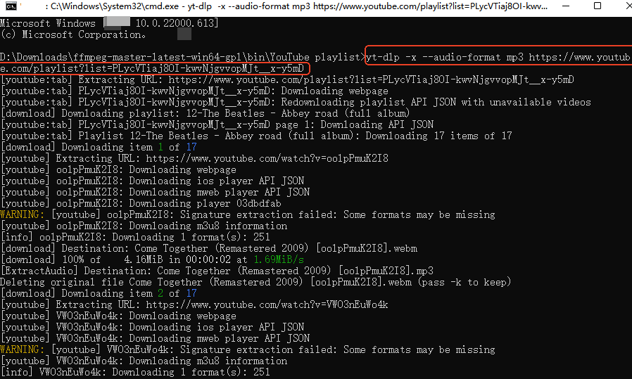 Guide on how to download YouTube music playlists to MP3/M4A with yt-dlp:
