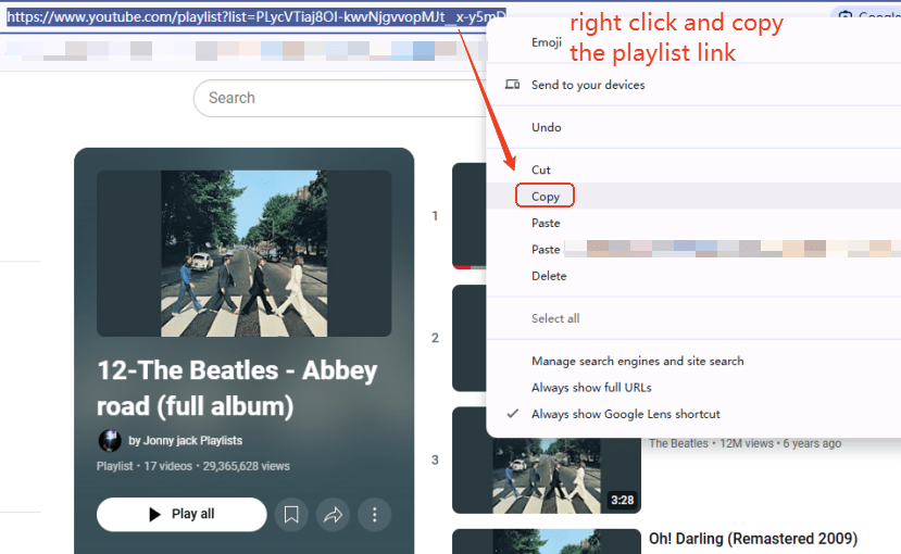Step 2: View full playlist of the YouTube playlist you want to download and copy the URL.