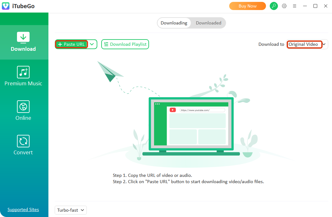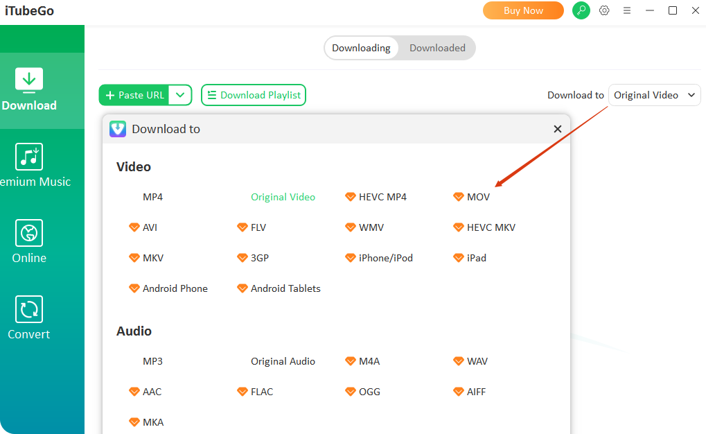 - Open it, copy and paste the YouTube video URL into the program, and choose the output format as MOV.