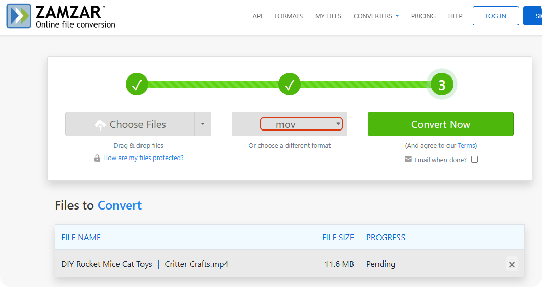 - Navigate to an MOV converter like Zamzar, and FreeConvert.