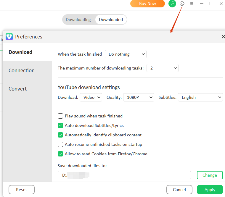 - Before converting, hit on the gear icon to set up the preferences. Once downloaded, you can find the videos under Downloaded tab.
